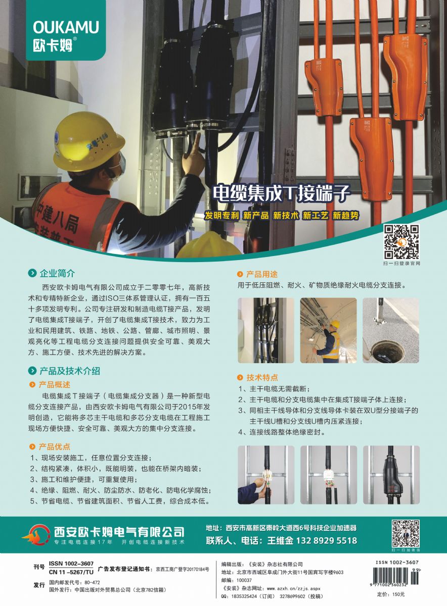祝贺欧卡姆公司及其发明专利产品荣登全国科技与管理期刊——《安装》杂志封面!