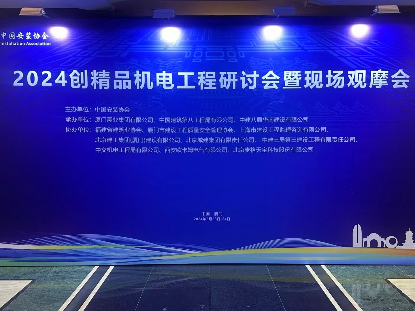 5月23日-24日,2024中国安装协会创精品机电工程研讨会暨现场观摩会在福建省厦门市召开。中国安装协会田秀增会长,潘庆建副会长,杨存成秘书长,唐忠赤、赵金山、刘建伟、吴辉、吕梅副秘书长,副监事长李鹏飞,监事吴亚轩出席会议。福建省建筑业协会侯伟生会长,黑龙江省建筑业协会孙洪军会长,河北省建筑业协会李同泽副会长,山西省建筑业协会王凡常务副会长,四川省建筑业协会陈大友副会长,中国建筑第八工程局有限公司潘玉珀质量总监、李本勇专家,中建八局华南分局技术质量负责人方顺江,中建八局华南公司蔡庆军总工程师、安装公司鲍冠男总经理,欧卡姆电气王维金董事长等领导、嘉宾应邀出席会议,来自全国580多家企业及相关协会工程质量管理人员1100多人参加会议。