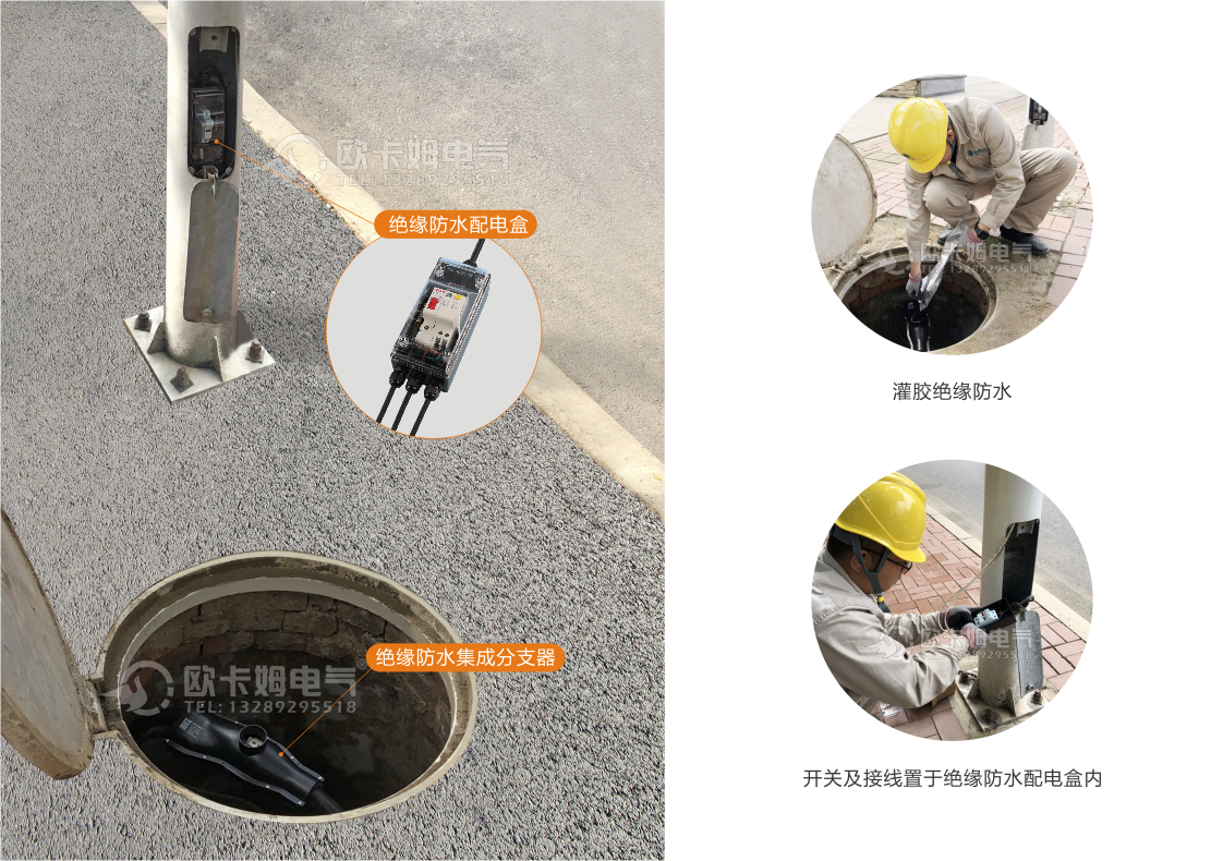 · 路灯开关及接线置于绝缘防水配电盒内,规范、美观、安全、可靠,避免灯杆漏电伤人。
